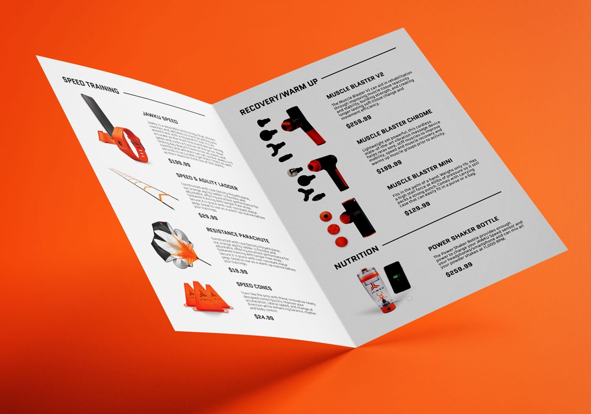 The Jawku print designs were often featured in magazines or flyers to hand out at local sporting events or trade shows. The dynamic designs are eye catching and leap off the page using a combination of shadow, dimension, and advanced layout techniques.