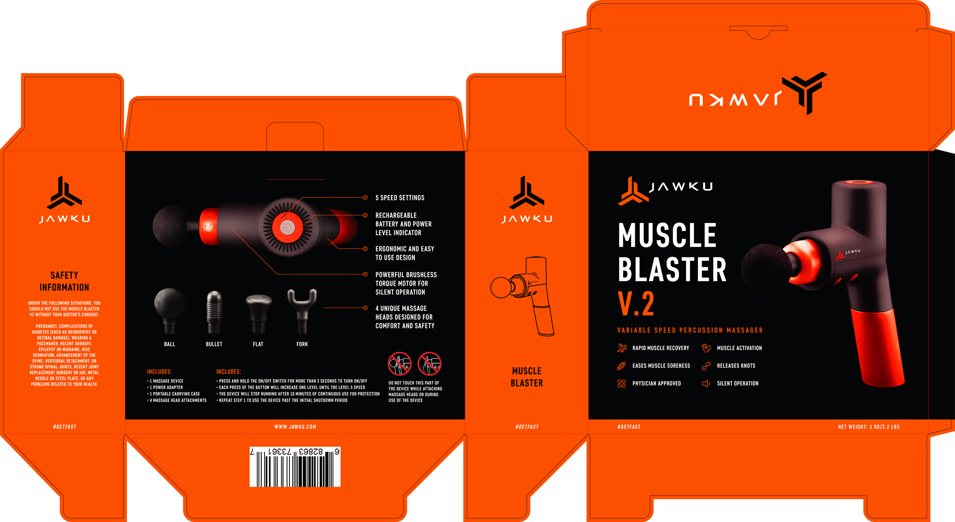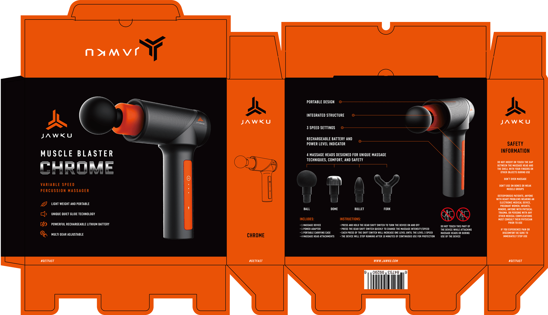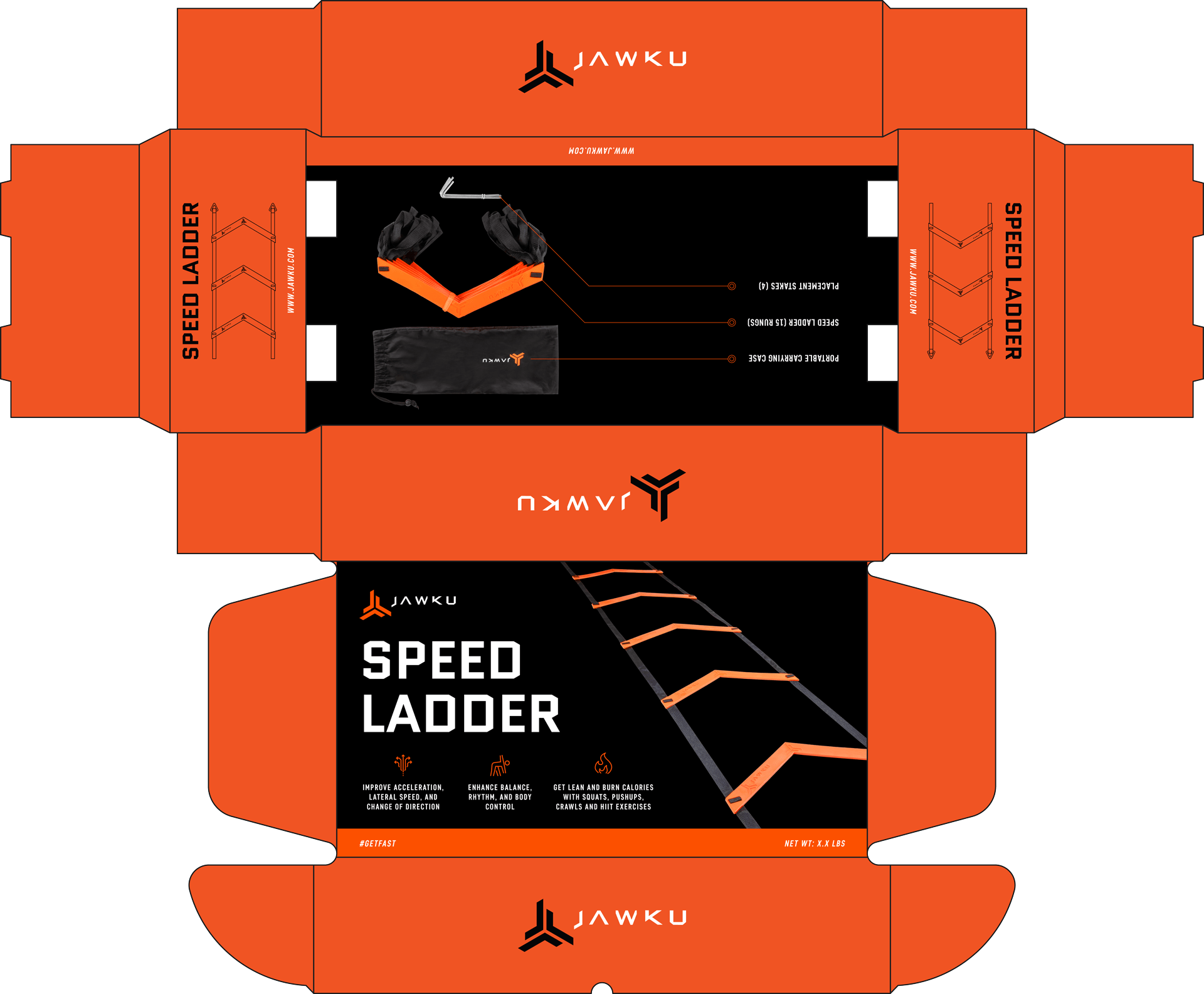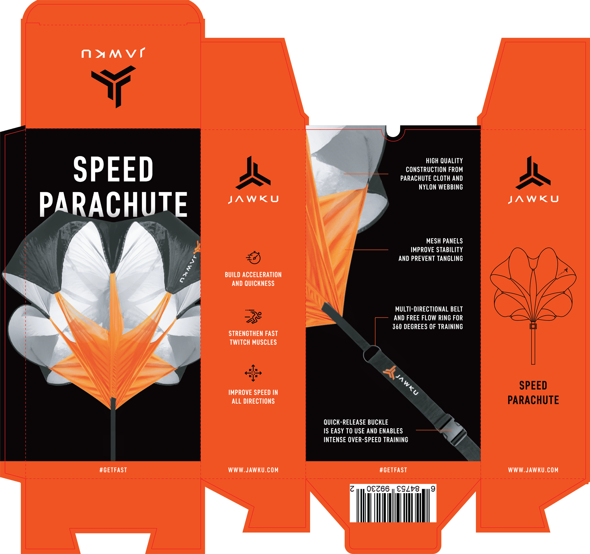 Working with jawku, I designed stunning, branded packaging for massage guns, speed tracking wearables, step training ladders, and even parachutes for running resistance. Each project included three dimensional details, high quality product photo work, and detailed instruction booklets; every aspect delivered with immaculate attention to detail.