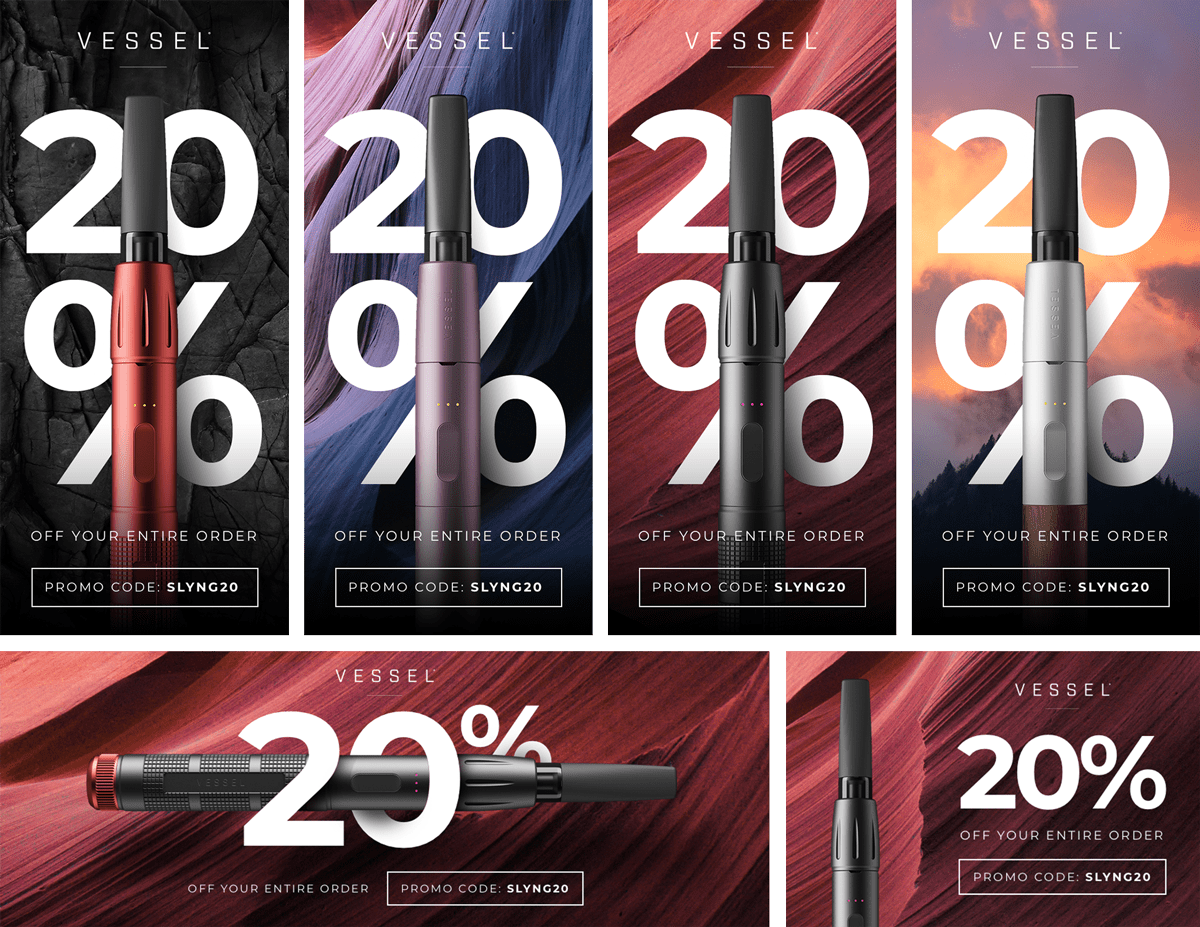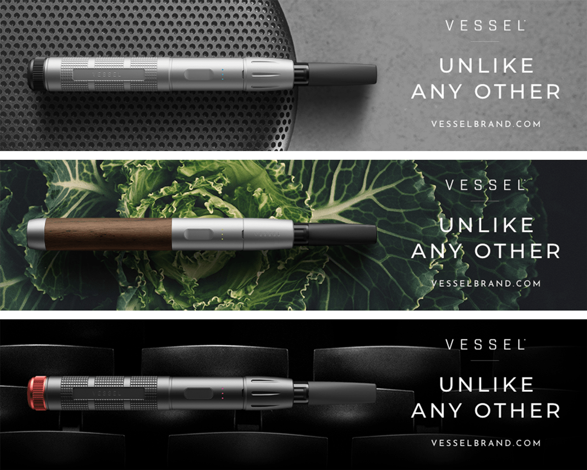 In this series of web ads, we used creative interplay of the Vessel devices and large, bold text to highlight the specific promotional discount. Intentional usage of thick-to-thin text kept the brand’s elegance in-tact while letting the discounted rate shine. These designs were not only eye catching, but were extremely aligned with the brand philosophy of boundary breaking ingenuity.